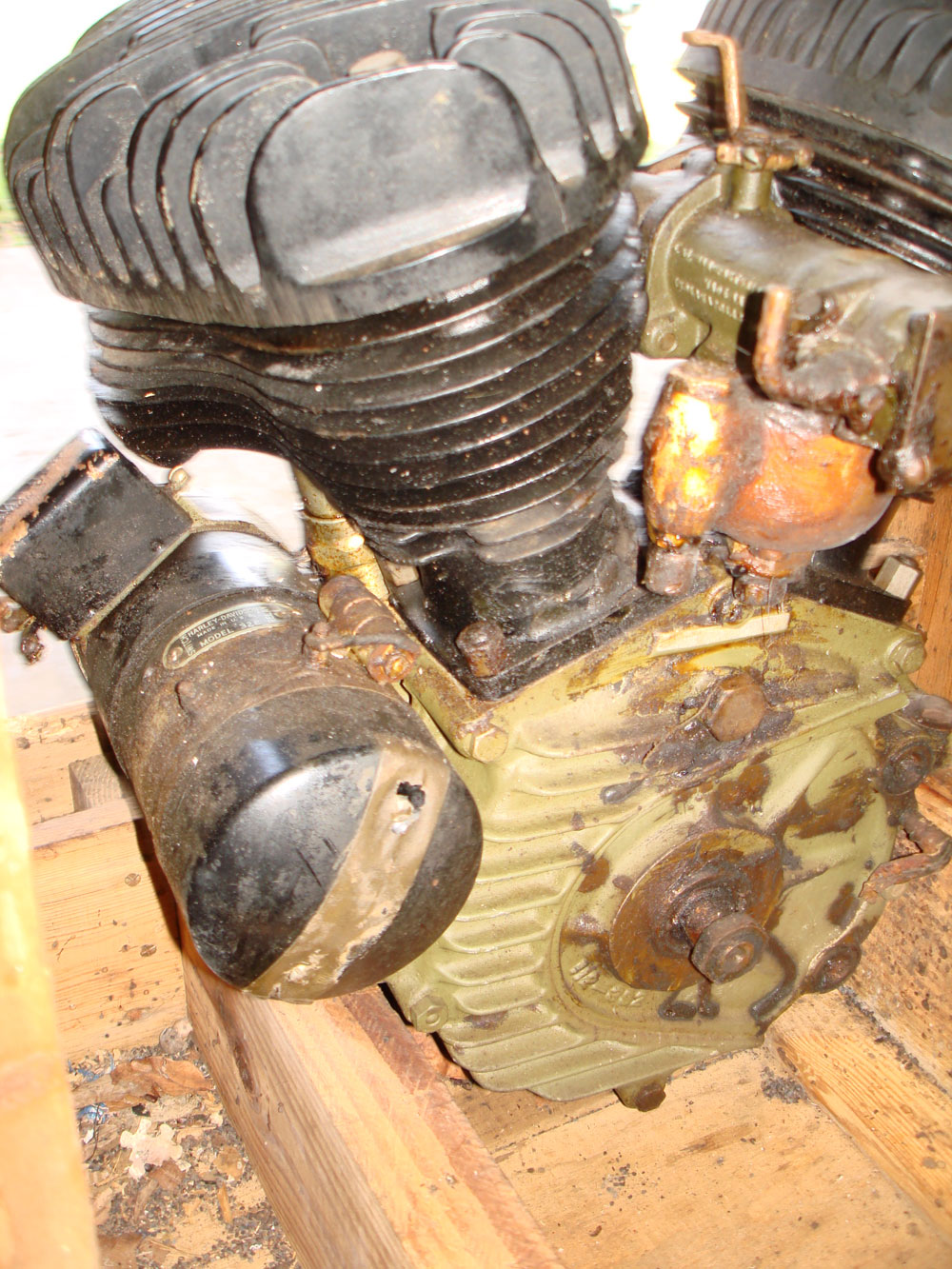 World War II Era Harley Davidson Flathead 45 WLA that has never been run and its' present owner of over 31 years has never removed it from its' original packing crate. Some paperwork included, hard to read with just the bare eye; but certainly can be done. Still covered in its original cosmoline throughout. Our research shows this to be an original WLA/WLC replacement part identified by its HD Part Number HRD-1-40M which is the part number for a Complete Motor Assembly. The US Army of WWII identified each vehicle in its' inventory by a G preceded number and the WLA motorcycle was issued G523 as marked on the crate. Replacement motors such as this had no VIN on the provided engine boss. This original crate would have been (re)packed in the '50s (which can be seen on some of the paperwork) and sent to an Air Force Unit then later sold as surplus. The H-D Logo stamped bag included the two park plugs and the paperwork was tag tied to the motor. It has a Linkert M88 1 1/4 Mod M Carb and Harley Davidson Switch Relay Model 32E. Other numbers can be seen on the cases also.